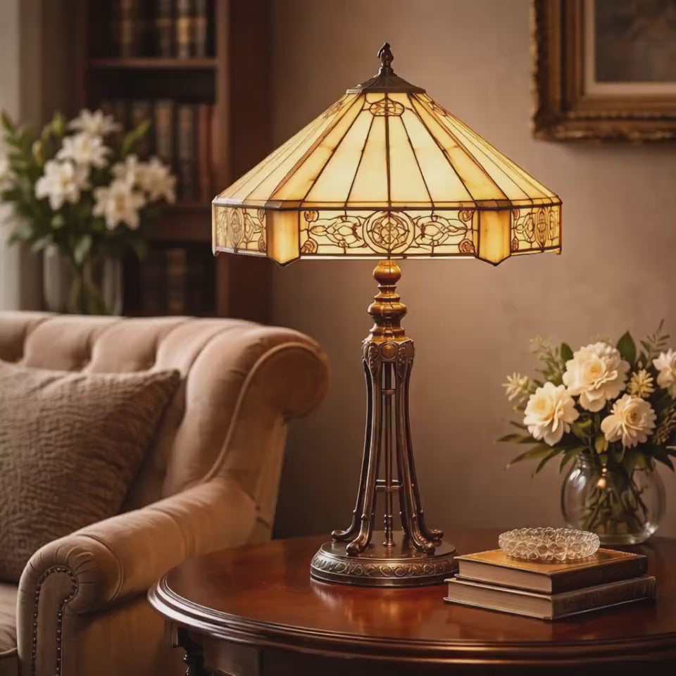 Le verre teinté crème diffuse une lumière chaude et ambrée qui baigne votre pièce d'une atmosphère apaisante. Contrairement aux lampes à éclairage direct, le vitrail filtre et adoucit la lumière pour créer un halo délicat — idéal pour une table de chevet, un bureau ou une console.